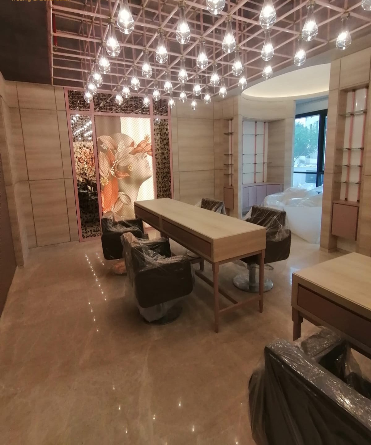 Located inside the prestigious DoubleTree by Hilton in Al Sadd, this project required the complete transformation of a blank commercial shell into a sophisticated salon and functional kids’ play area. The client’s vision was clear: an ultra-modern, premium grooming space with high-end materials, unique lighting, and visually impactful detailing while also creating a family-friendly zone that supports relaxation and entertainment.